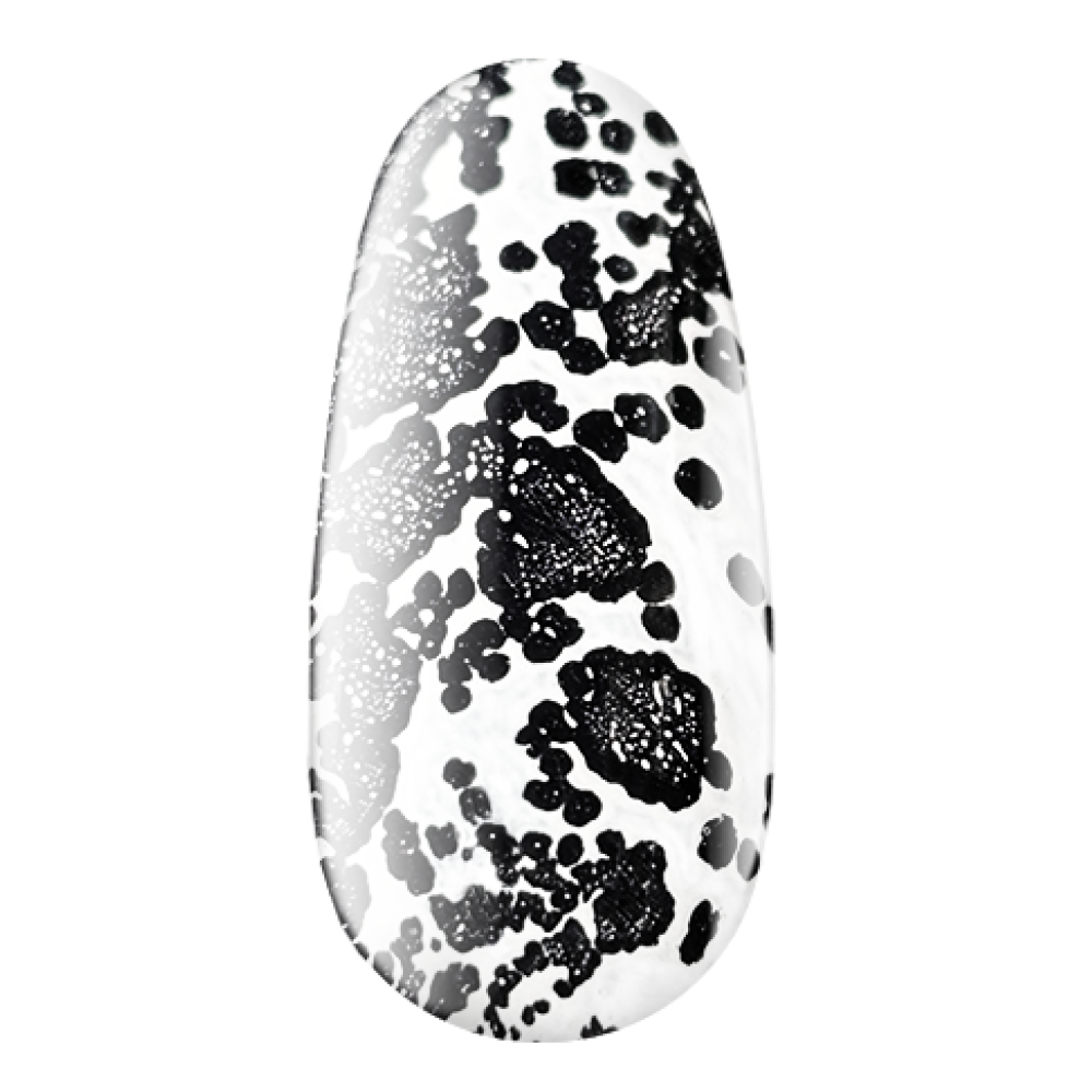 - Кисточкой с минимальным количеством белого гель-лака (можно использовать и другой цвет) аккуратно прокрасьте сверху топ. Подождите 30–60 секунд, пока появится кружевной эффект.
