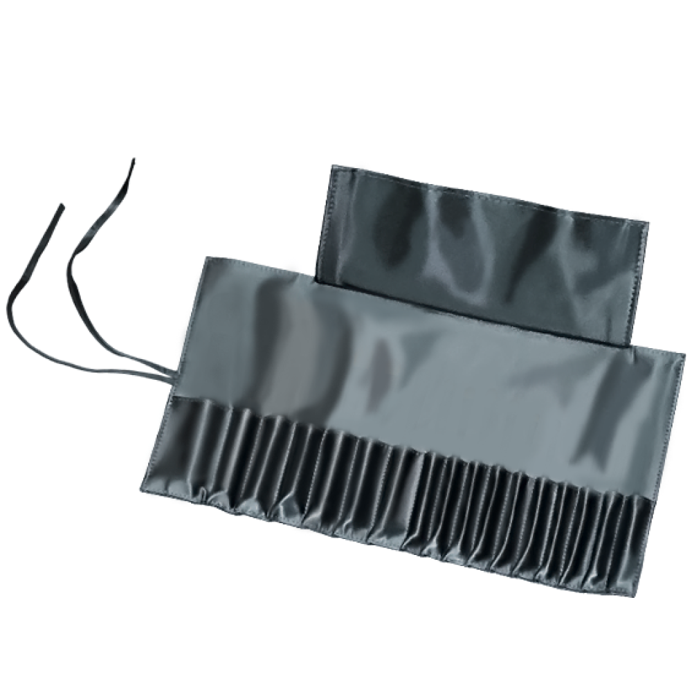 Представленный чехол содержит 17 ячеек и позволяет разместить набор кистей, покрывающий все потребности визажиста для обеспечения полноценной работы. Чехол позволяет получить быстрый доступ к кистям, благодаря чему удобен в работе. В сложенном состоянии занимает мало места. Чехол изготовлен из износостойкой ткани с водоотталкивающей пропиткой, легко чистится и не требует особого ухода.