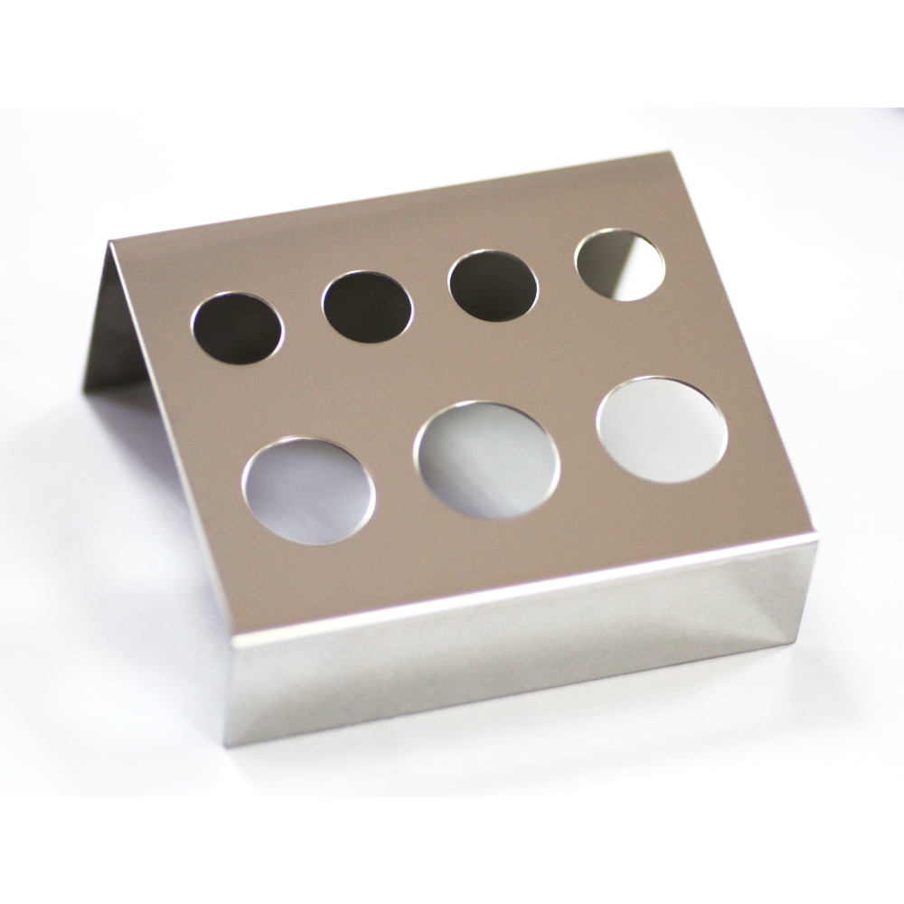 Металлическая подставка имеет 7 круглых отверстий разного диаметра (10 мм-4шт, 15 мм- 1шт, 17 мм-2шт) и предназначена для размещения колпачков с пигментами или другими материалами, используемыми в ходе процедуры. Благодаря стильному лаконичному дизайну, подставка гармонично впишется в любой рабочий интерьер.