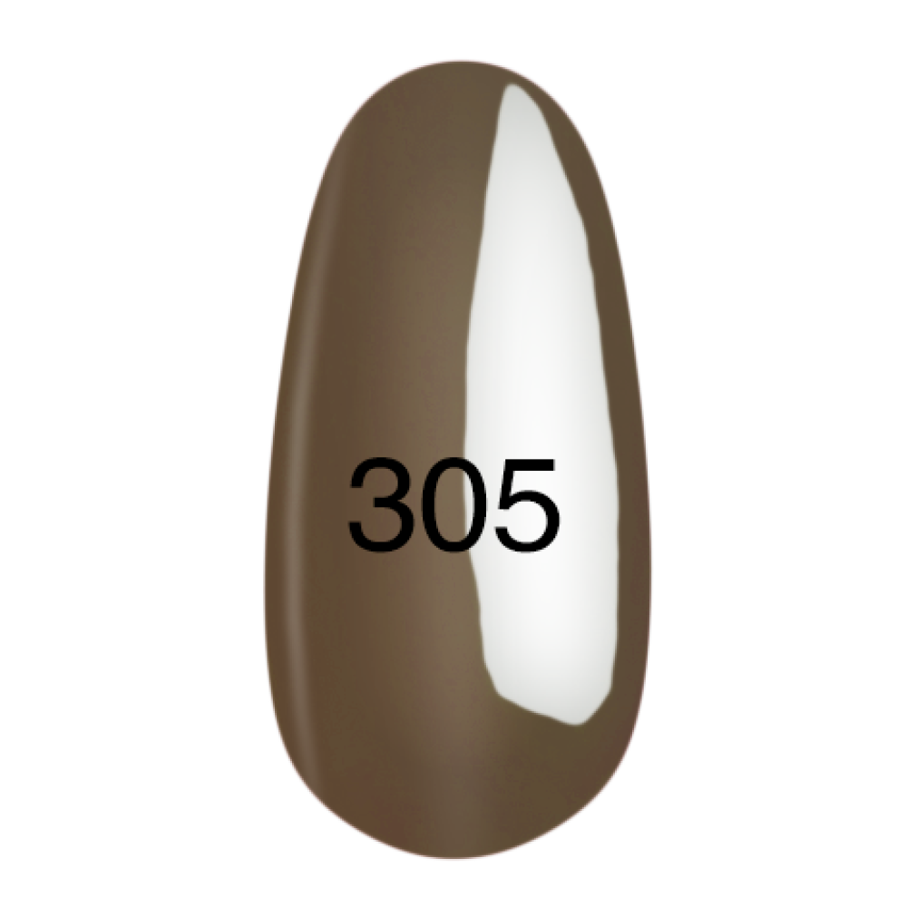 Гель-лак № 305 имеет бледный лилово-бежевый цвет. Рекомендуется равномерное покрытие двумя тонкими слоями с последующей полимеризацией каждого слоя 2 минуты в УФ лампе или в LED лампе 30 секунд.