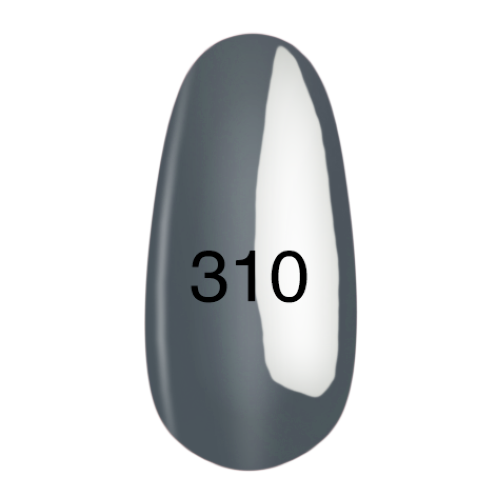 Гель-лак №310 имеет бледный сине-серый цвет. Рекомендуется равномерное покрытие двумя тонкими слоями с последующей полимеризацией каждого слоя 2 минуты в УФ лампе или в LED лампе 30 секунд.