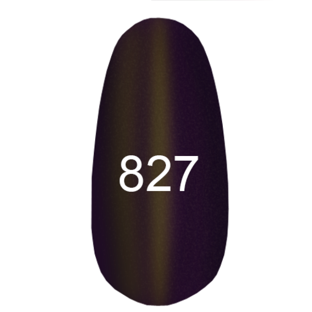 Гель-лак № 827 обладает роскошным темно-фиолетовым оттенком с ярко-выраженным золотисто-коричневым бликом, который эффектно подчеркивает глубину основного цвета и создает визуальный эффект торжественного нейл-арта.