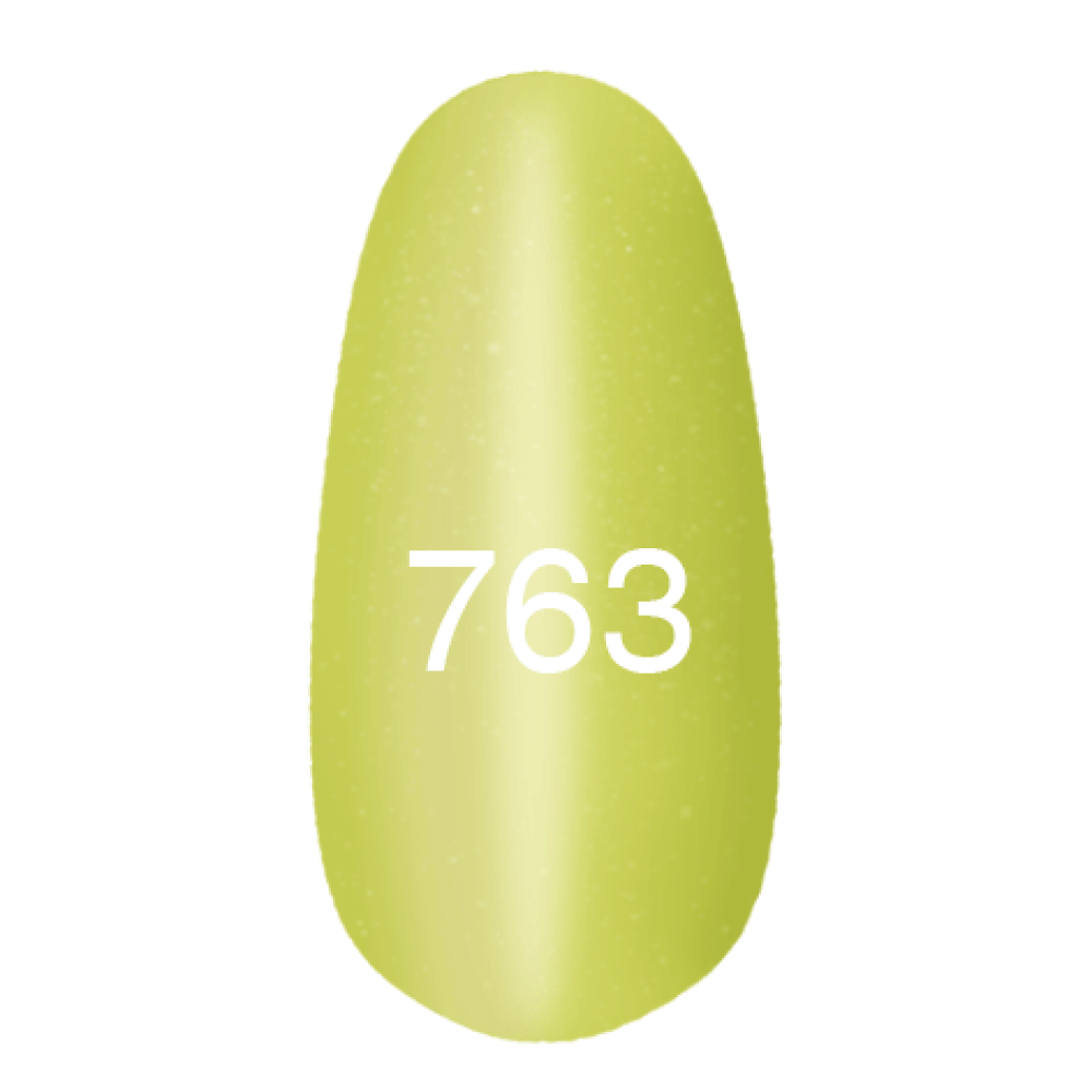 Гель-лак №763 имеет бледно-салатовый цвет. Блик соответствует оттенку гель-лака.
