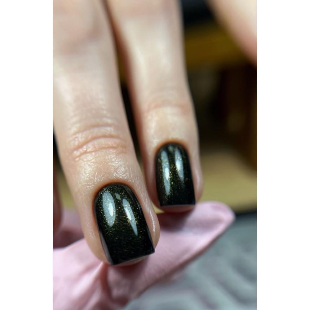 Оттеночная палитра коллекции покоряет насыщенностью пигментации с вкраплением сияющих частиц, повторяющих холодное мерцание драгоценностей. Оттенок 02 RS — это благородный черный цвет с мелким золотистым шиммером, придающим маникюру особенную глубину и выразительность. Гель-лак равномерно распределяется по ногтям и не растекается, уже в два тонких слоя создавая прочное и эластичное покрытие.