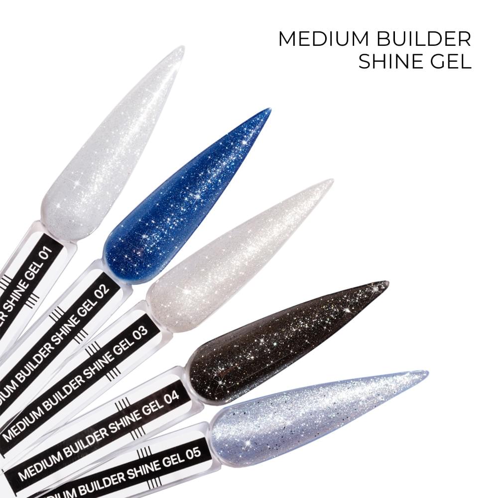 Medium builder shine gel от популярного, международного бренда Kodi Professional — новая коллекция давно полюбившихся мастерам моделирующих гелей, но с добавлением сияющих частичек для реализации особенных дизайнов.