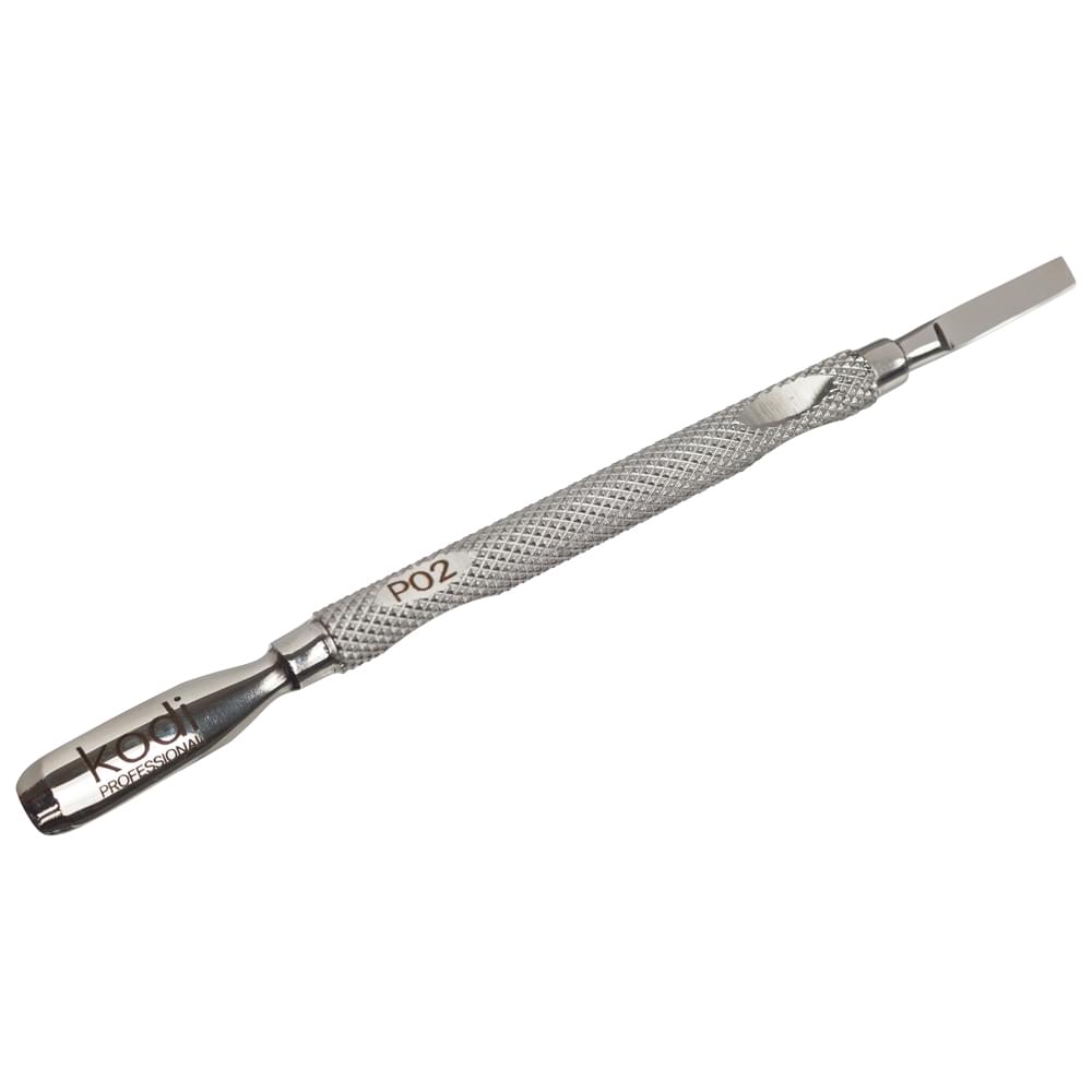 Инструмент имеет два рабочих полотна: с одной стороны расположена скругленная лопатка; с другой стороны расположена лопасть по типу ровного шпателя. Рабочие кромки заточены в меру остро, чтобы отодвигать кутикулу и не царапать ногтевую пластину. Рифленая рукоятка обеспечивает надежную фиксацию инструмента в руке.