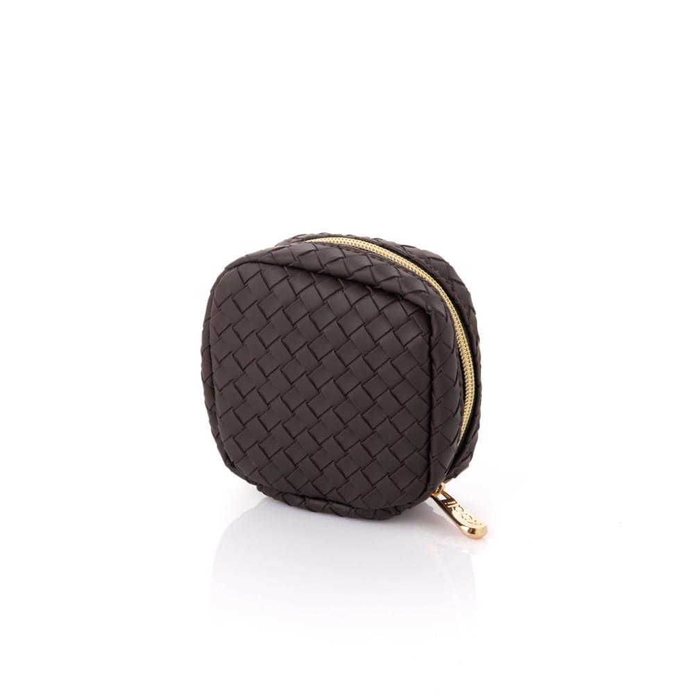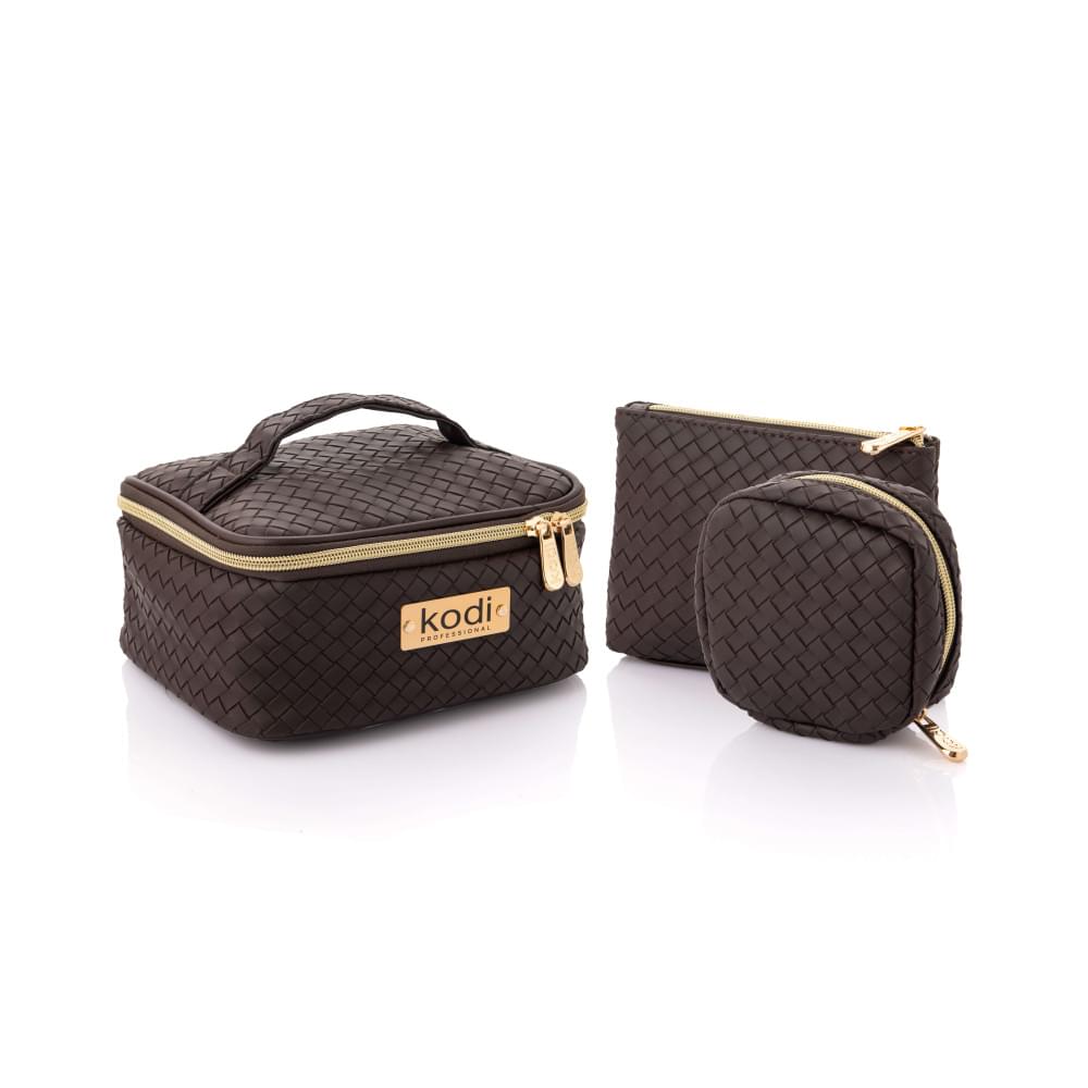Все органайзеры закрываются на молнию, большая косметичка имеет удобную ручку для транспортировки. Отдельно стоит отметить минималистичный трендовый дизайн с имитацией плетения и красивую шоколадную расцветку изделий.