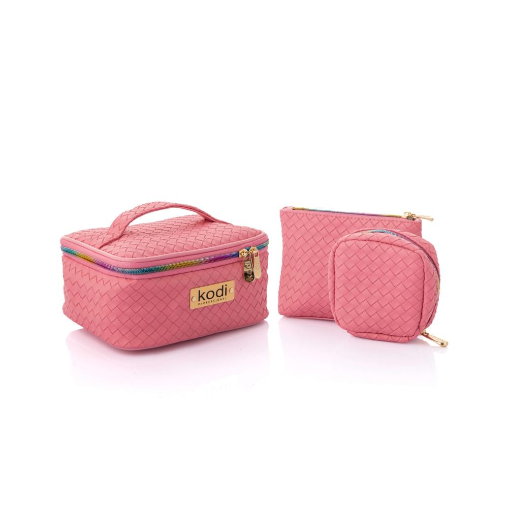Все косметички закрываются на качественный замок с фирменной гравировкой, а самый большой несессер украшает табличка с лого Kodi Professional. Отдельно стоит отметить минималистичный трендовый дизайн с имитацией плетения и красивую розовую расцветку изделий.