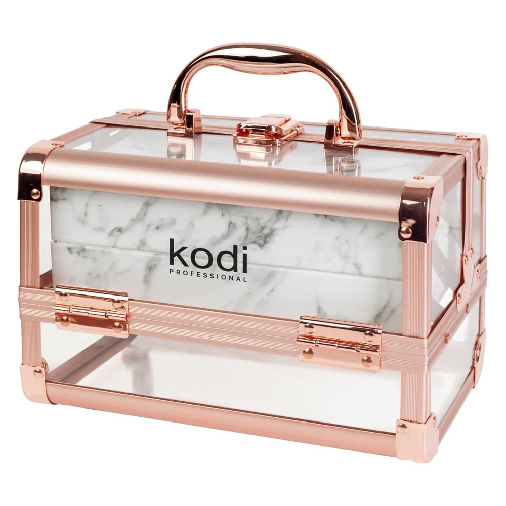 Корпус кейса №46 выполнен из прозрачного акрила, который по своему внешнему виду схож со стеклом, но отличается большей прочностью и практичностью. Фурнитура – металлическая, в оттенке розовое золото. Внутренняя выдвижная система ячеек стилизована под мрамор, материал – искусственная кожа. Дополнительно дно ячеек устлано винилом.