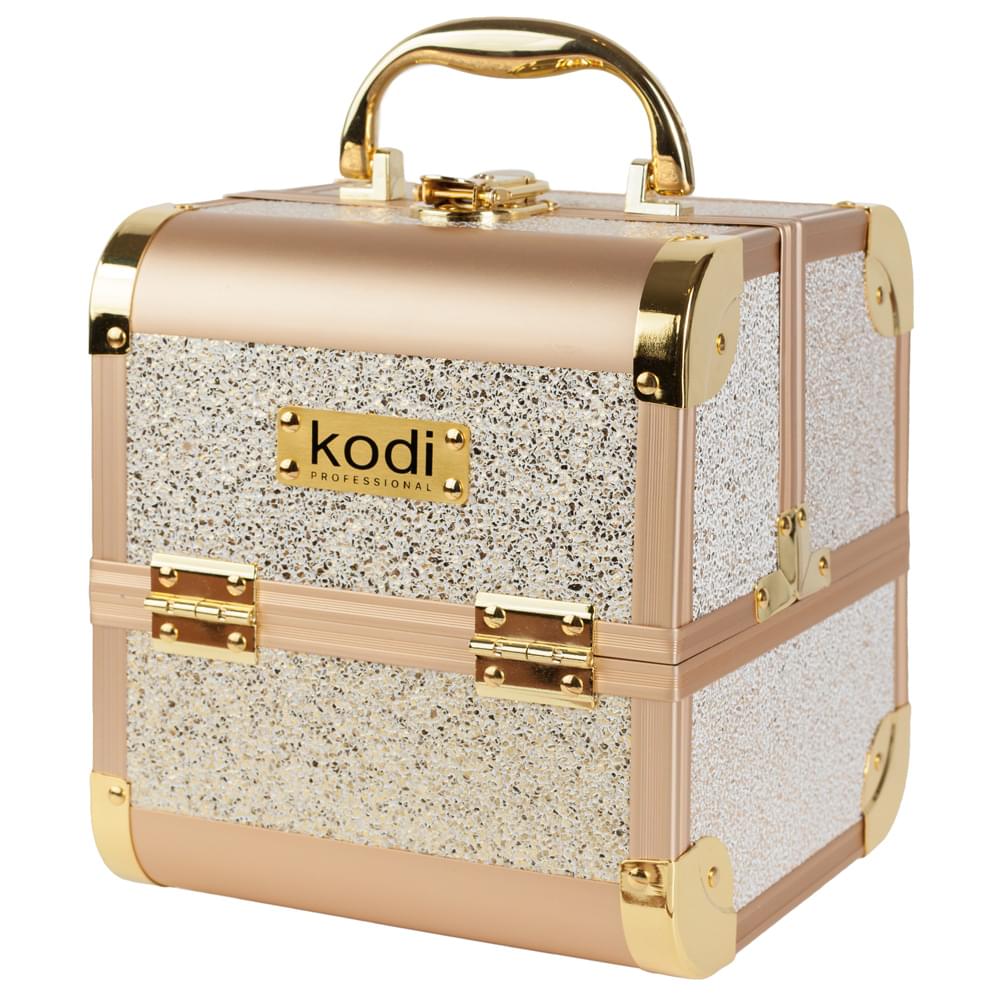 Внешнее оформление кейса №33 Gold opal выполнено из структурной эко-кожи, стилизованной под опаловую текстуру золотисто-белого цвета. За счет такого решения кейс имеет элегантный и нежный вид. Материал корпуса – прочный пластик; фурнитура – металлическая, золотистая.