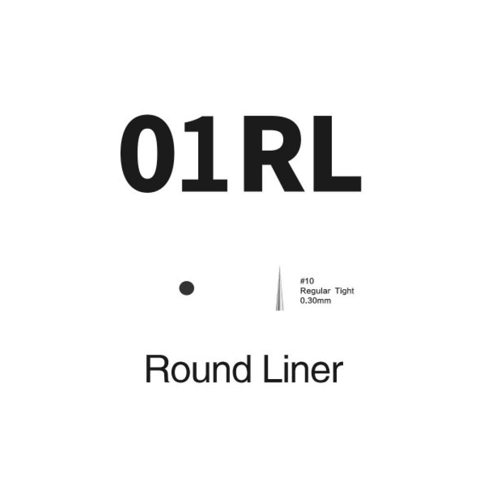 Round Liner (RL) — это лайнерная игла с острой заточкой. Такие иглы предназначены для работы в пудровой технике, создания четких тонких линий, прорисовки контуров и полупрозрачных теней. Игла с длинным конусом заточки является травматичной, поэтому мастеру рекомендовано учитывать тип кожи и толщину эпидермиса в области прокола.