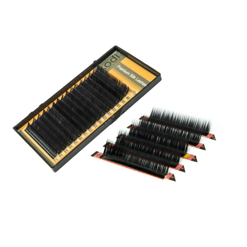 Финальный результат процедуры наращивания ресниц, помимо мастерства специалиста, зависит от выбранной техники, типа искусственных ресниц и желаемого эффекта. Именно эти факторы наравне с качеством применяемых материалов определяют насколько привлекательно и естественно будут выглядеть наращенные ресницы. Высококачественные шелковистые ресницы для наращивания KODI PROFESSIONAL по внешнему виду и структуре максимально приближены к натуральным, не отягощают собственные ресницы, позволяют получить натуральный, но выразительный образ.Ресницы с типом завитка L используются преимущественно при глубоко посаженых глазах или при азиатском разрезе глаз. Продукт гипоаллергенный.