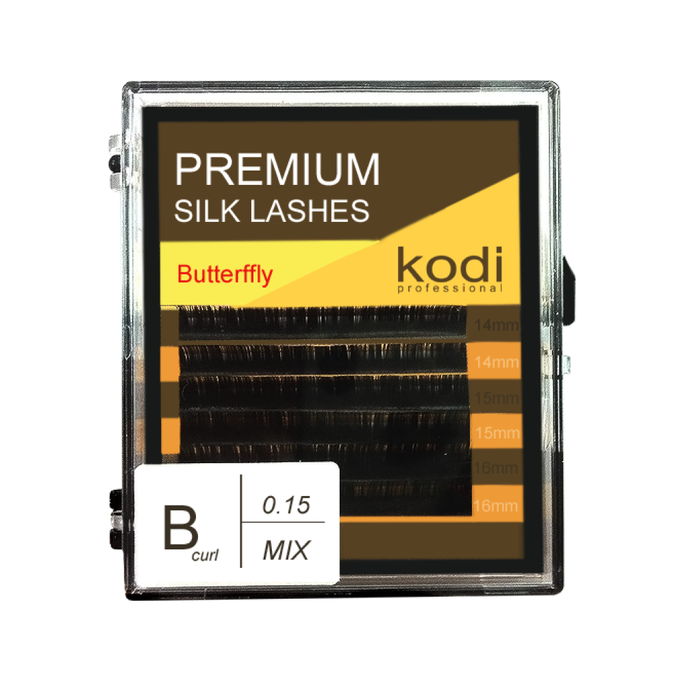 Ресницы B 0.15 (6 рядов: 14/15/16 mm), упаковка Butterfly