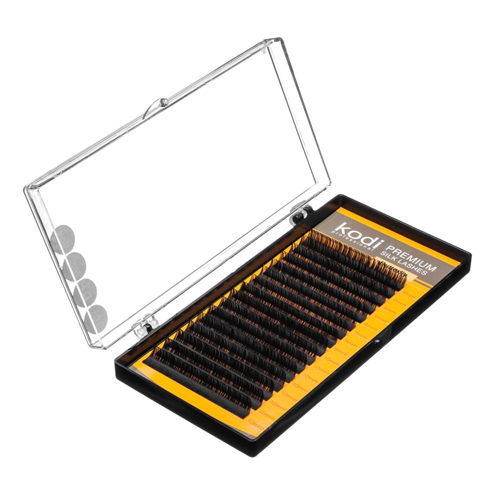 KODIPROFESSIONLпредставляет новые ультратонкие ресницы, которые позволяют добиться невероятных объемов с сохранением естественного эффекта, как по внешнему виду, так и по ощущениям на веке. Имея революционную толщину всего в 0.03 мм, ресницы максимально схожи с натуральными. Невесомые, мягкие и эластичные, ониявляются идеальным выбором для тех, кто постоянно носит наращенные ресницы, а также оптимально подходят для комбинированных техник. Ресницы изготовлены из гипоаллергенного силиконового моноволокна. Они комфортны в работе, не деформируются при наращивании и в процессе носки. Ультратонкие ресницы с изгибом D+ делают глаза максимально распахнутыми и придают им драматический эффект.