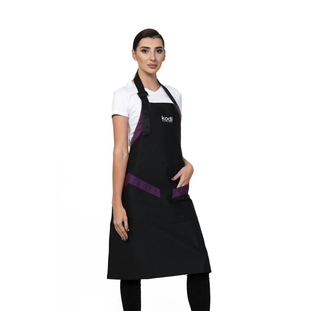 Фартуки и пеньюары Фартук Kodi черный с фиолетовыми вставками, белый логотип (длинный)