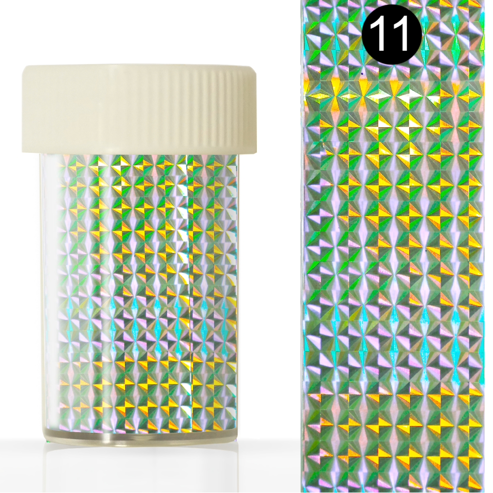 Фольга для литья в баночке KODI PROFESSIONAL № 11 с абстрактным рисунком используется для полного покрытия ногтевой пластины, чтобы передать визуальный рельеф и необычный блик покрытия. Частицы металлизированного дизайна с голографическим эффектом нанесены на специальную основу размером 4*110 см, и легко переводятся на остаточный дисперсионный слой покрытия легким нажатием.