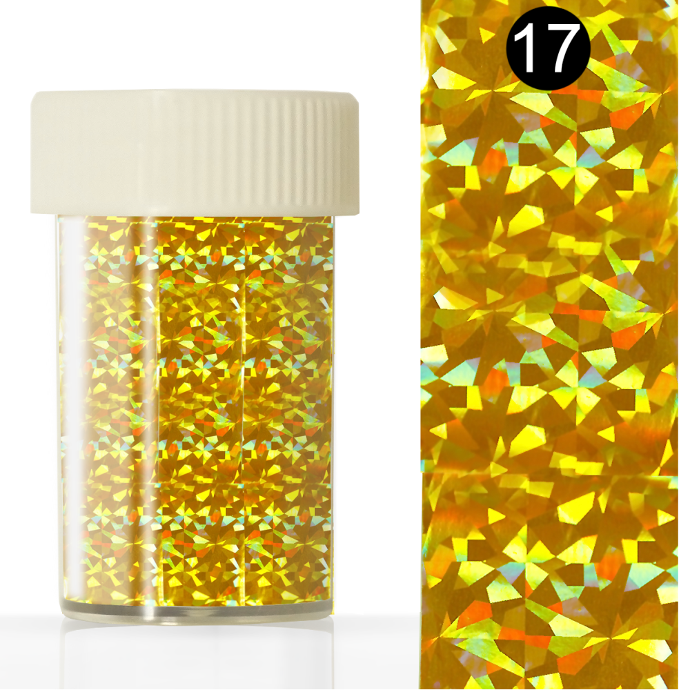 Фольга для литья в баночке KODI PROFESSIONAL № 17 это материал для дизайна ногтей, представленный в формате длинной ленты-основы (4*110см) с оригинальным принтом. Золотой вариант сложного калейдоскопа осколков разной формы и размера позволяет создавать яркие комбинированные дизайны с любым оттенком в качестве фонового гель-лакового покрытия.