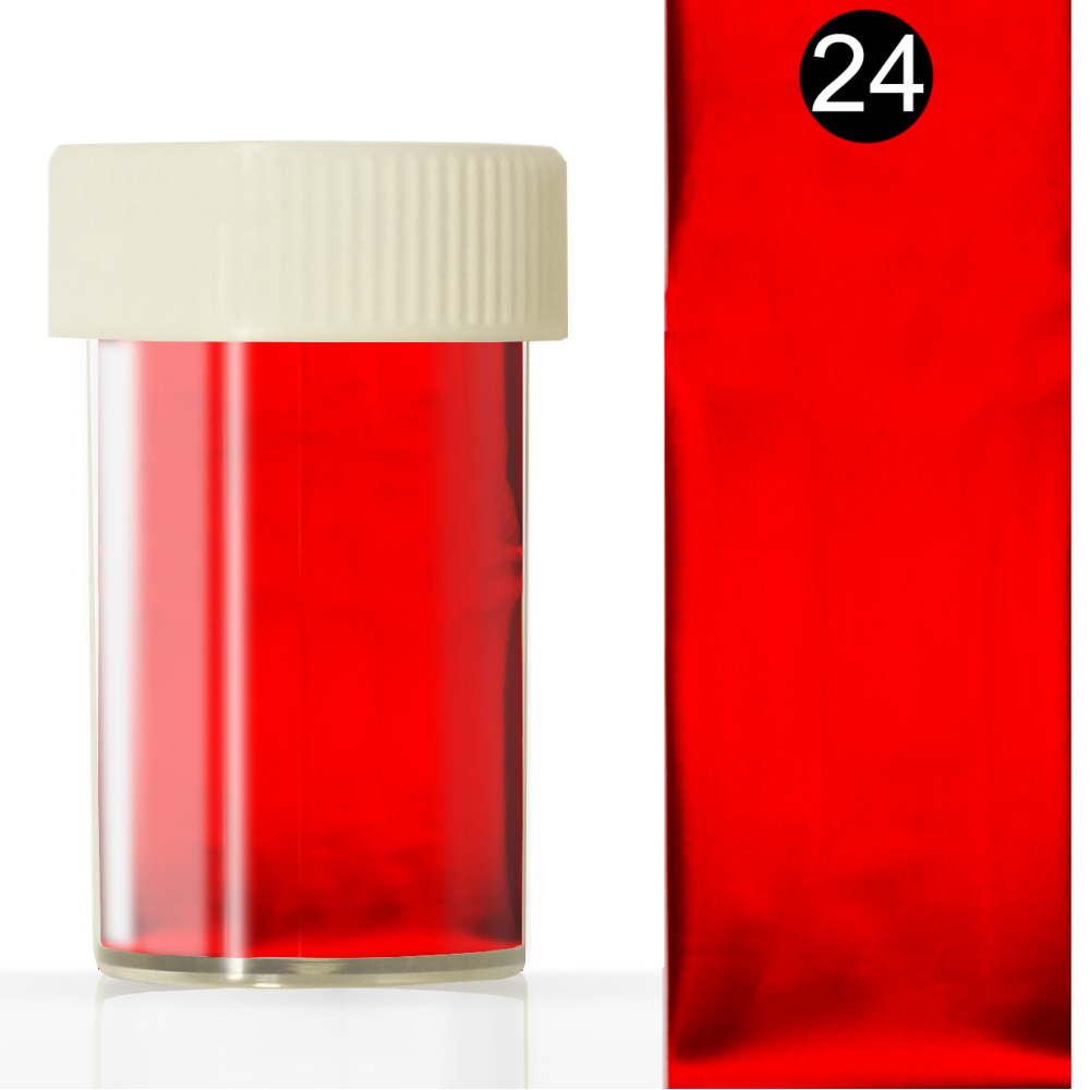 Фольга для литья в баночке KODI PROFESSIONAL № 24 – это однотонный металлизированный дизайн для ногтей насыщенного красного цвета, который просто наносится и обеспечивает визуальный эффект металлизированного покрытия. Особенность фольги в том, что дизайн можно перекрыть витражным гель-лаком любого цвета, чтобы изменить базовый оттенок пигмента и получить совершенно новое цветовое решение.