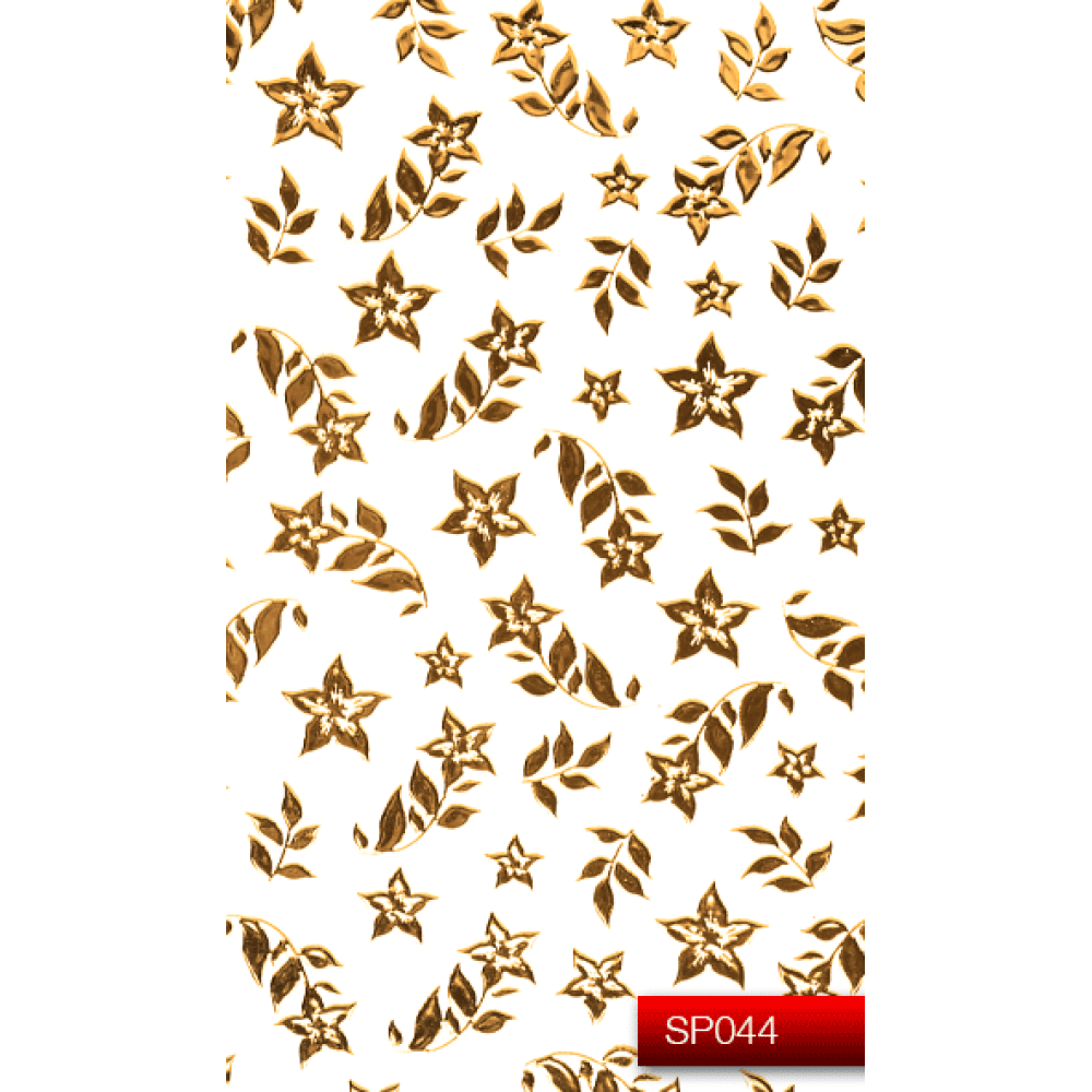 Стикеры для дизайна ногтей Nail Art Stickers SP 044 позволяют создать легкий и эффектный нейл-арт без затрат времени и усилий. Милый и стильный рисунок из обособленных цветов с крупными лепестками и изящно прорисованным стеблем выполнен в золотом металлизированном дизайне. Объемная прорисовка каждого элемента рисунка обеспечивает максимальное сходство принта с созданным вручную изображением в технике литья. Рисунки расположены на эластичной тонкой пленке-наклейке, которая легко ложится на ногти и расправляется по форме ногтевой пластины. Цветы можно помещать на гель-лаковое покрытие как частично, так и полностью, в зависимости от желаемого эффекта в результате.