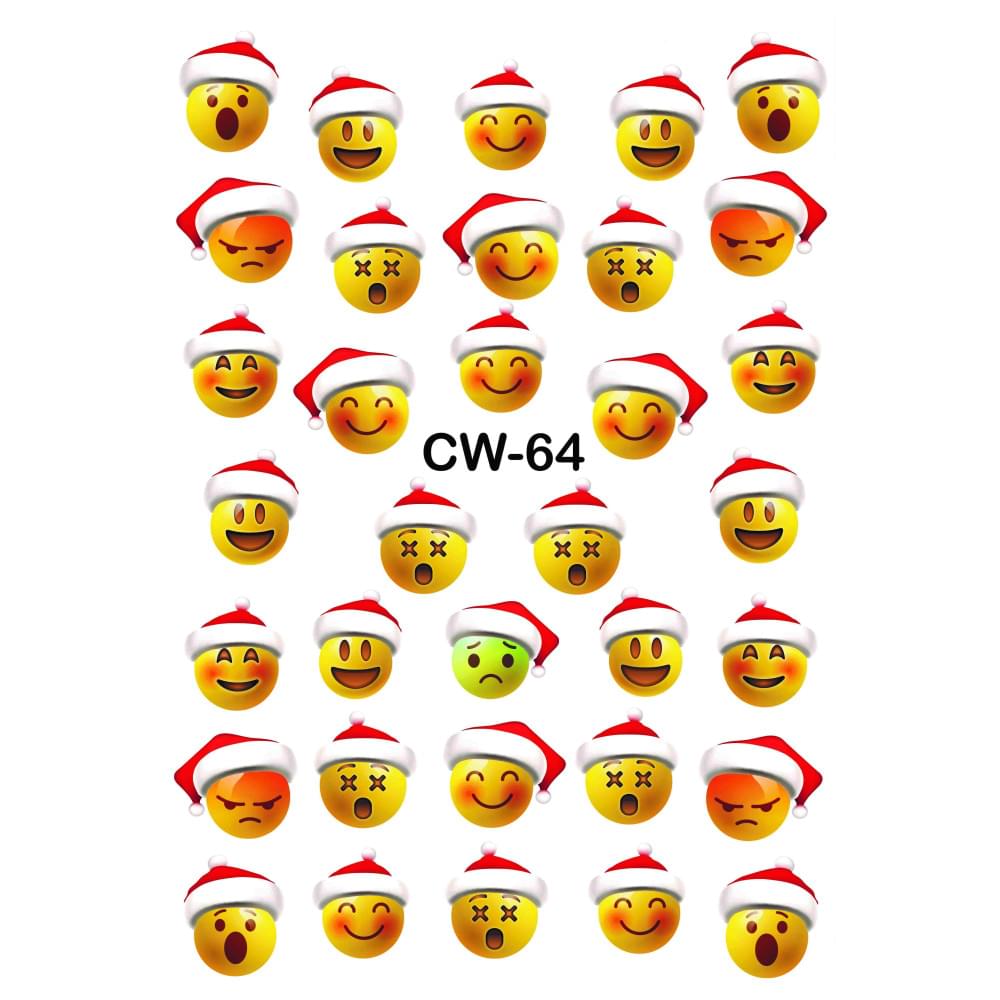 Если традиционные элементы новогоднего нейл-арта, такие как снежинки, елочные игрушки, снеговички, вас больше не привлекают и хочется чего-то нестандартного, обратите внимание на слайдер дизайн CW-64. Веселые смайлики в новогодних колпаках помогут вам создать веселый и немного дерзкий новогодний нейл-арт, который привлечет внимание всех окружающих.