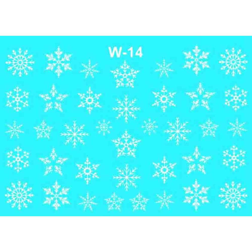 Ногти, декорированные изящными снежинками – универсальный вариант зимнего нейл-арта. Такой дизайн идеально подходит как для ежедневного ношения, так и для разных праздничных случаев, к примеру, для новогодней вечеринки. Несколько видов снежинок, размещенных на слайдер дизайне W-14, позволят создать вам невероятно нежный атмосферный дизайн.