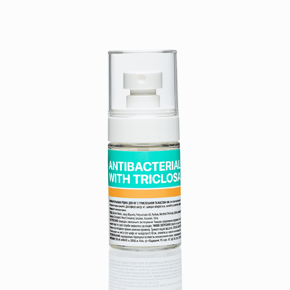 АНТИБАКТЕРИАЛЬНАЯ ЖИДКОСТЬ ДЛЯ НОГ С ТРИКЛОЗАНОМ, 70 МЛ.