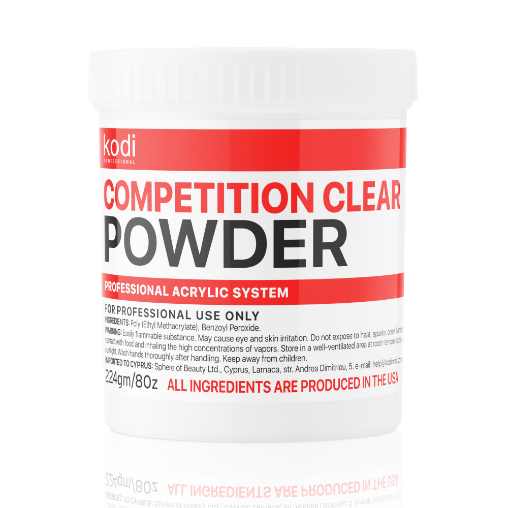 Competition Clear – прозора акрилова пудра з УФ-абсорбентами, що швидко застигає. Нанесення кремоподібної текстури легко піддається управлінню. Ідеально підходить для конкурсних технік.
