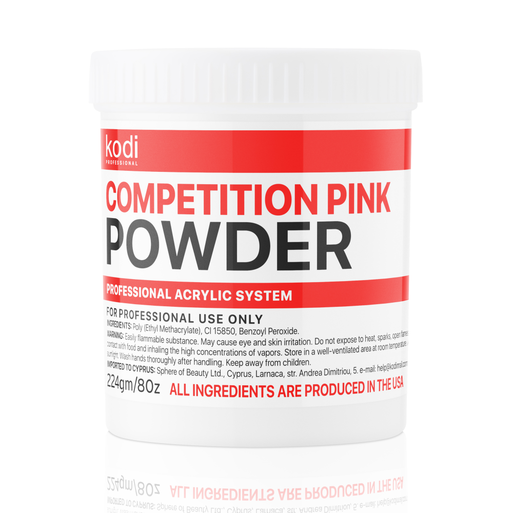 Competition Pink– ніжно-рожева прозора акрилова пудра, що швидко застигає. Завдяки хімічному складу пудра має відмінне зчеплення з натуральною нігтьовою пластиною та чудову прозорість. Незамінна для конкурсних технік.