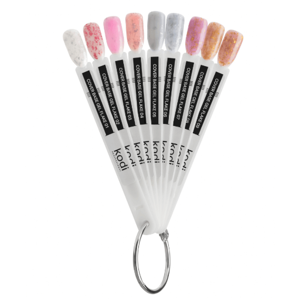 Найскладніше для клієнта в кріслі майстра манікюру — вибрати відтінок, що сподобався. Найвідповідальніше для майстра — продемонструвати всю широту асортименту та красу кожного відтінку з колекції Cover Base Flake. Це завдання допоможе реалізувати функціональна палітра від популярного бренду KODI PROFESSIONAL.