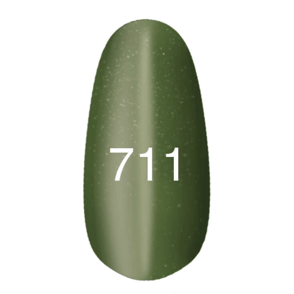 Гель-лак №711 зеленого кольору. Відблиск відповідає відтінку гель-лаку.