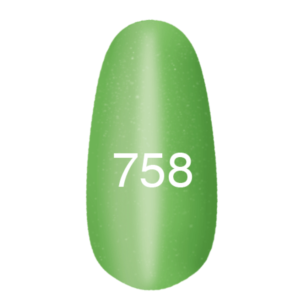 Гель-лак №758 свіжо зеленого кольору (кольору молодого листя). Відблиск відповідає відтінку гель-лаку.