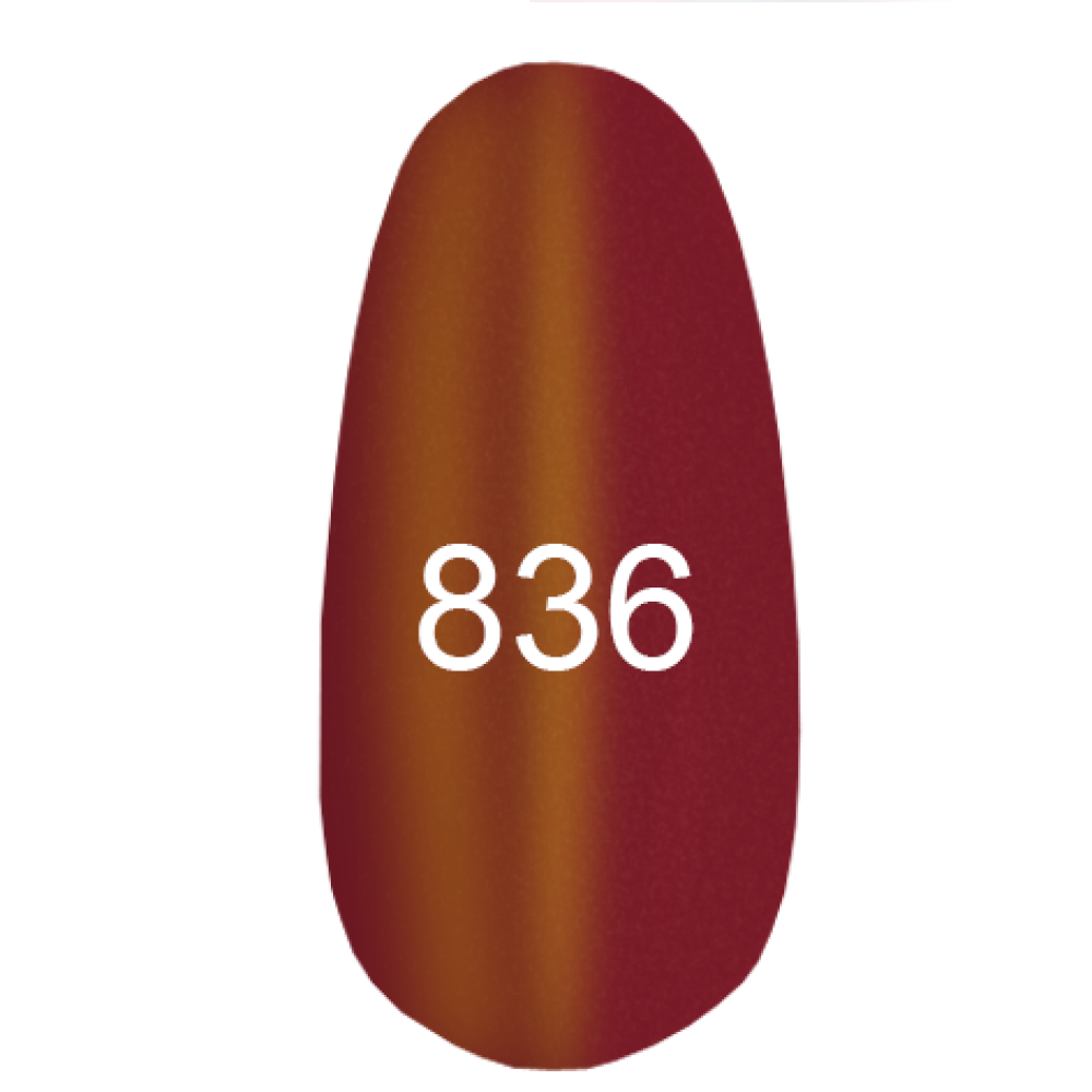Технологія нанесення припускає взаємодію металізованих часток із спеціальним магнітом для проявлення контрастного переливу світла. Гель-лак №836 має розкішний золотисто-помаранчевий відтінок з яскраво-вираженим відблиском в тій же кольоровій гаммі. Поверхня покриття має пластичну текстуру та стійка до появи мікротріщин та відслоювання в процесі носіння матеріалу протягом більш, ніж 14 днів.