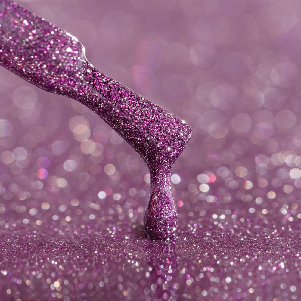 Гель-лак № 09DS: прозора основа з мерехтливими частинками фіолетового кольору.