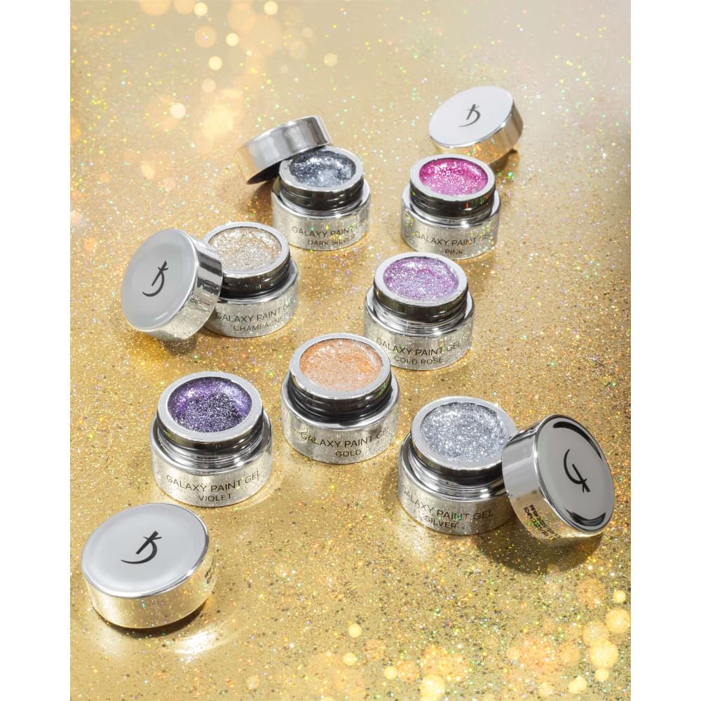 Серія гель-фарб Galaxy відрізняється високим вмістом шимеру в складі, завдяки чому ідеально підходить для святкових мерехтливих варіантів дизайну. Ще одна перевага продукту полягає в тому, що дана гель-фарба може використовуватися в якості основного покриття нігтів, оскільки її покриваюча здатність дозволяє якісно перекрити ніготь всього з одного шару. Має липкий шар.