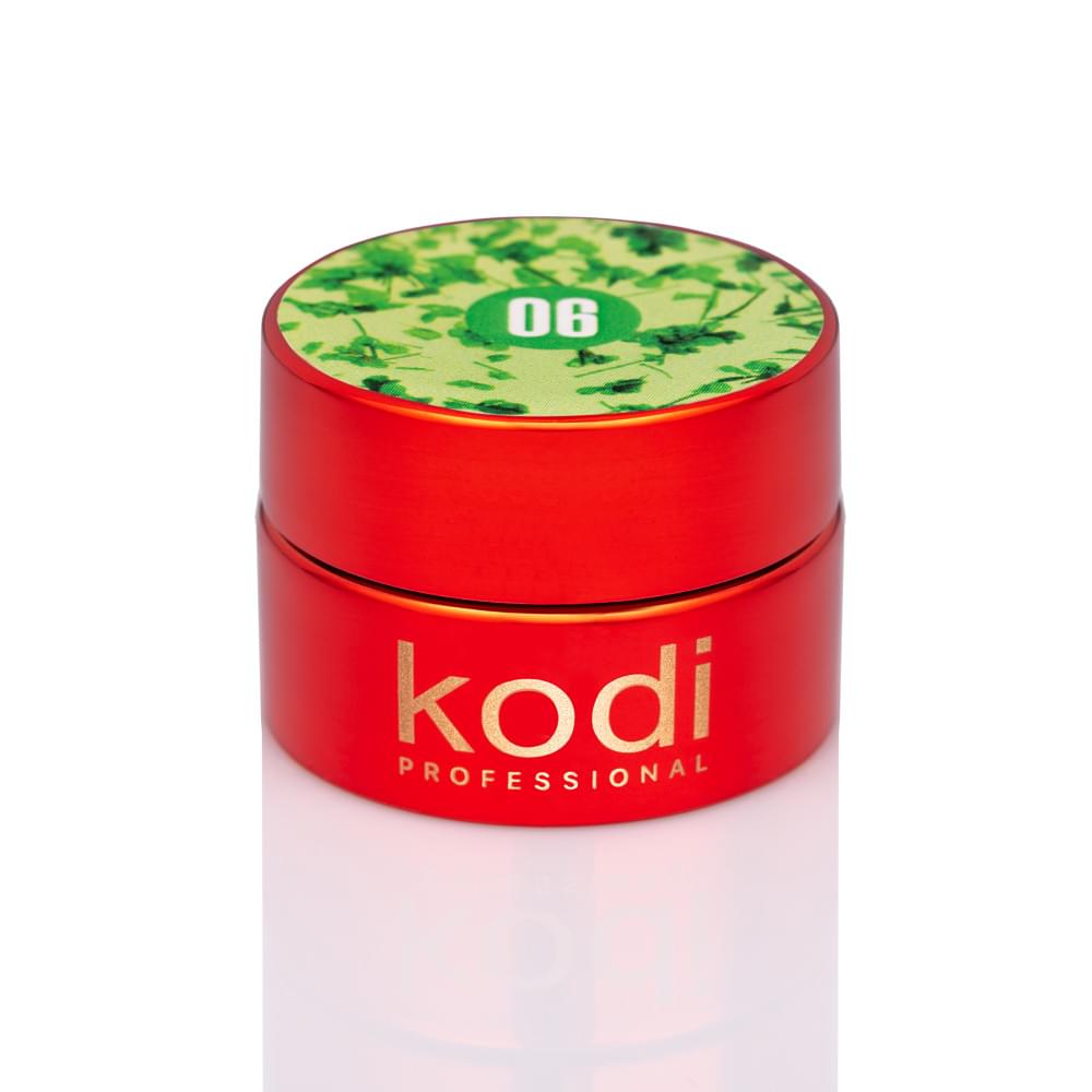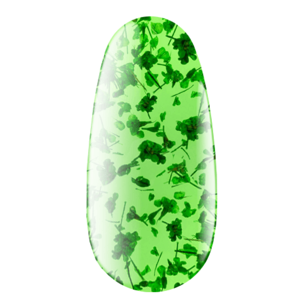Колір №06 — напівпрозорий лаймово-зелений з додаванням сухоцвітів. Має середню по густоті консистенцію, рівномірно розподіляється за допомогою пензля, не розтікається. Гель можна використовувати як самостійний продукт, з кольоровою підкладкою і навіть застосовувати як моделюючий засіб при формуванні вільного краю нігтів. Вибирайте варіант, який вам до душі, та експериментуйте в задоволення!