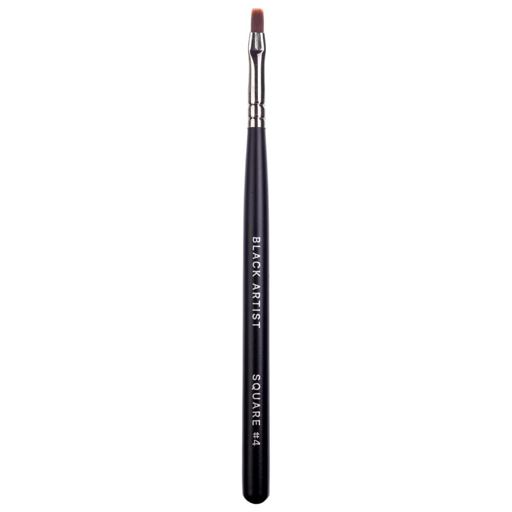 Пензлик для гелевого моделювання нігтів "Black Artist" Square #4 (ручка: чорна, ворс: нейлон)