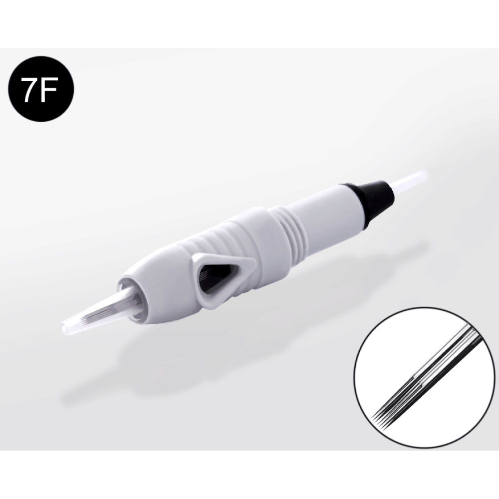 Голка полірується і заточується таким чином, щоб травматизація шкіри в ході процедури була мінімально можливою. Голка-модуль 7 FLAT містить семиканальну плоску голку з йодованої сталі.