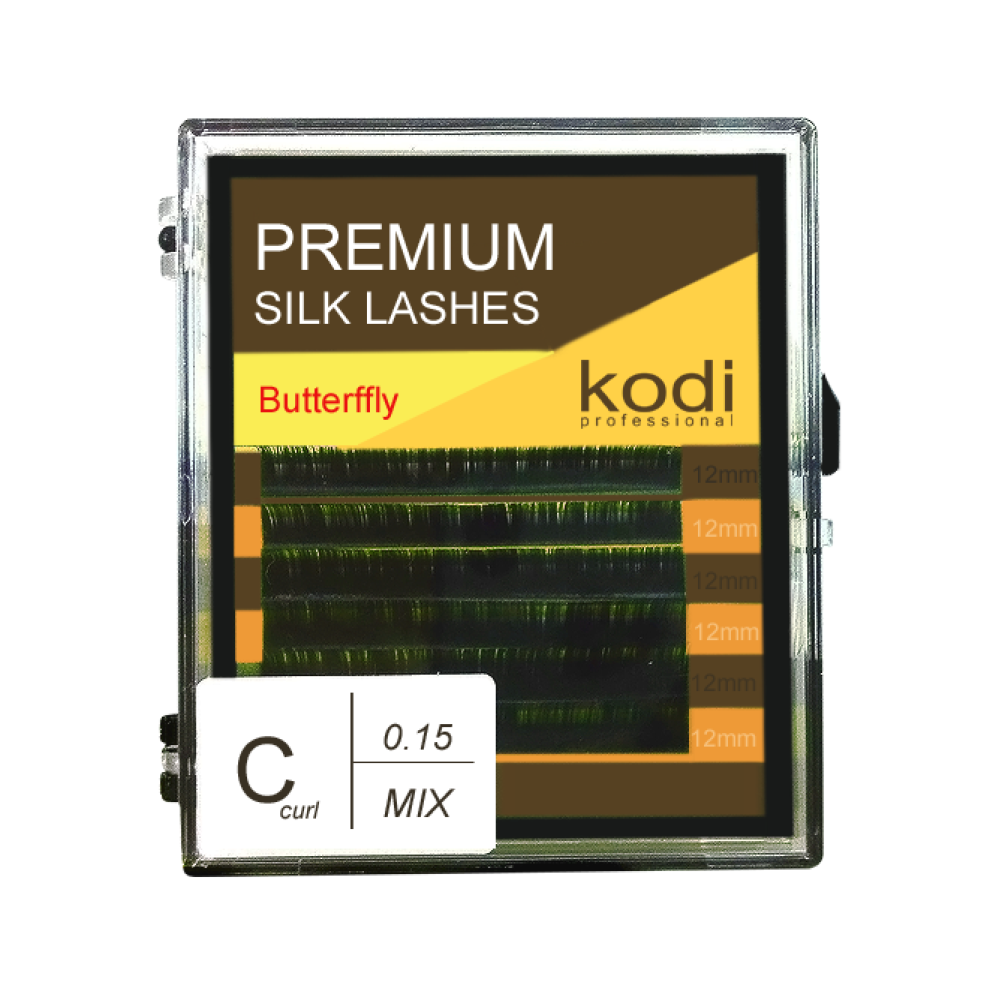Вії для нарощування Butterfly Вії зелені C 0.15 (6 рядів: 12 mm), упаковка Butterfly