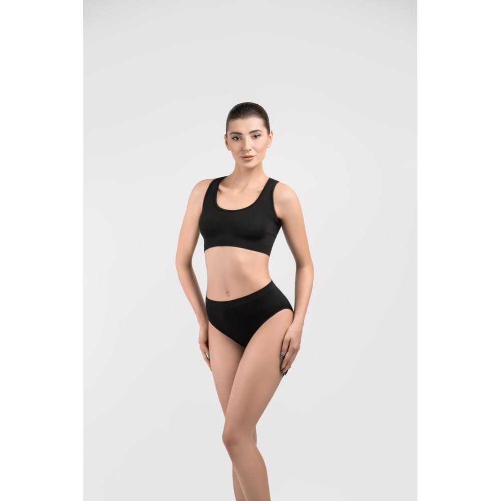 Базовий топ на широких бретелях з вставними чашечками і еластичною резинкою практично невідчутний на тілі, при цьому добре підтримує груди. Така модель не сковує рухів, не давить на шкіру, вражає неймовірною м'якістю і бездоганним приляганням до тіла. Матеріал топа добре пропускає повітря і відводить вологу. Підходить для спорту.