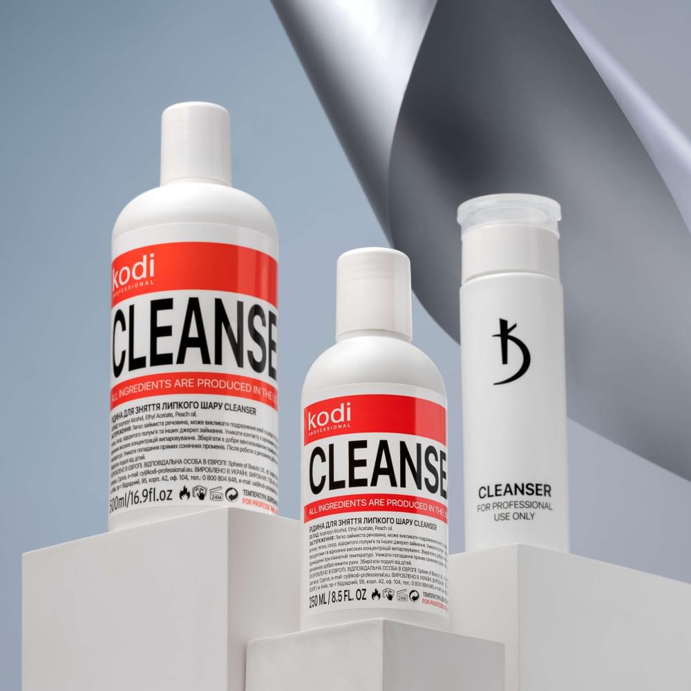 Щоб гарантувати клієнтові якісний результат при покритті нігтів гель-лаком, вкрай важливо дотримуватися правильної технології. Рідина для зняття липкості Cleanser входить доскладу професійної системи гель-лакового покриття і застосовується для зняття дисперсійного (липкого) шару c фінішного покриття. Завдяки вмісту олій у складі засіб не пересушує і не подразнює шкіру. Ще одна функція цього засобу – забезпечити покриттю глянцевий блиск і надати додаткової міцності.