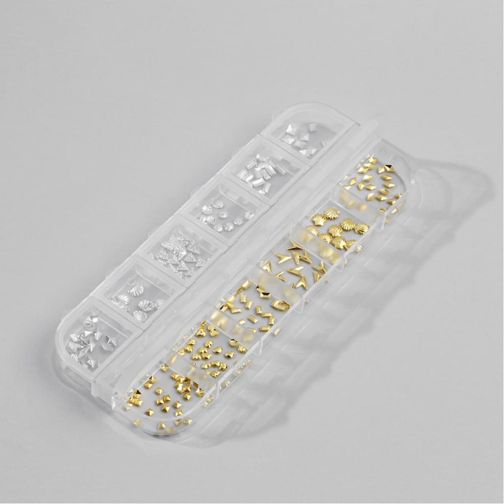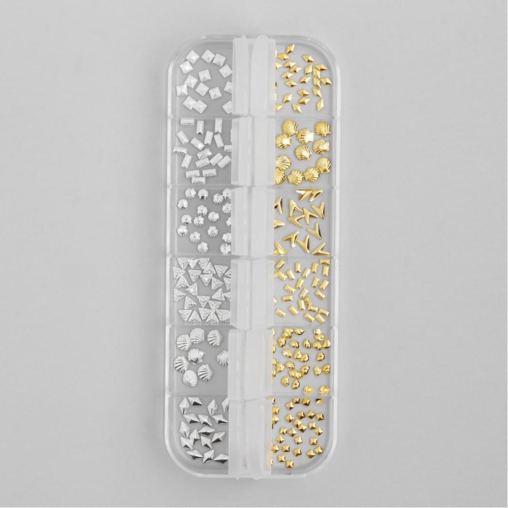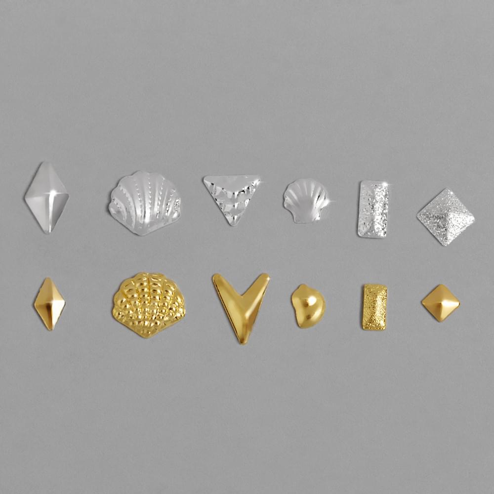 Мікс №7 представляє собою набір з 12 різних декоративних елементів різної форми та розміру: ромби, геометричні квадрати, тематичні мушлі, стильні прямокутники та багато іншого в трендовому поєднанні золота та срібла. Прикраси можна кріпити на спеціальний клей Diamond glue та фіксувати за допомогою топу, також використовувати їх в акваріумному дизайні для створення 3D-ефектів.