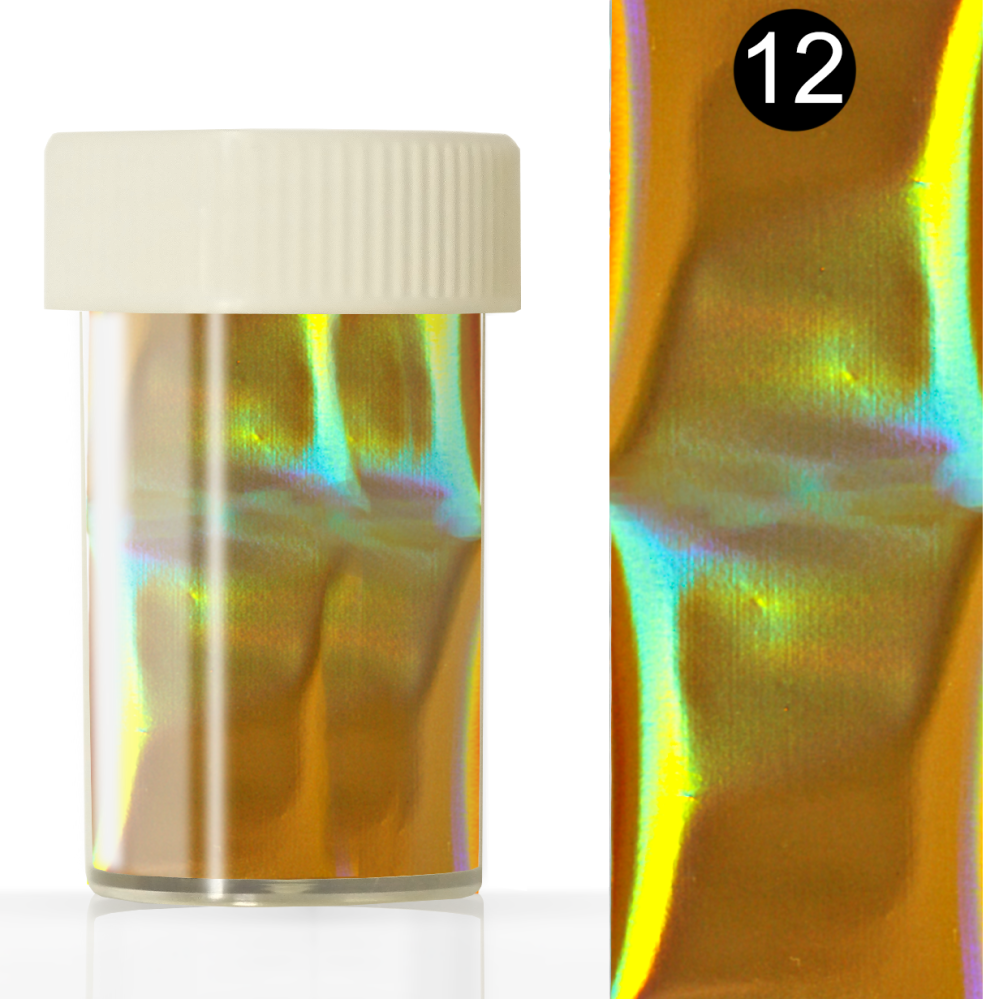 Фольга для лиття в баночці KODI PROFESSIONAL № 12 це гладкий золотий лист (4 * 110см) з голографічним переливом, який переводиться на нігті як повністю, так і фрагментарно. Дрібнодисперсні частки напилення легко відображаються на дисперсійному шарі гель-лакового покриття і утворюють ідеальну блискучу поверхню на нігтях. За рахунок особливостей текстури в результаті виходить стильний лаконічний дизайн нігтів, який підходить для будь-якого образу.