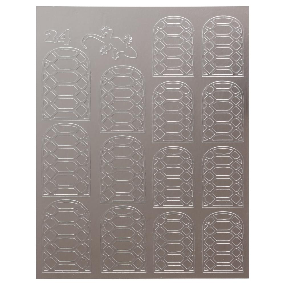 Анімалістичні текстури майже ніколи не покидають нігтьових трендів. Такий дизайн завжди виглядає стильно, сміливо і сучасно. Текстура шкіри рептилії красиво виглядає на нігтях будь-якої довжини і форми, що відкриває необмежений простір для експериментів. Металізовані наклейки № 24 з сріблястою хижою текстурою допоможуть вам створити найактуальніший сьогодні нейл-арт.