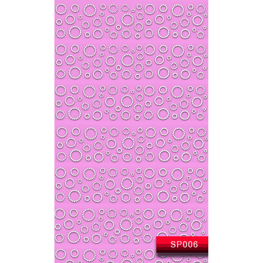 Стікери для дизайну нігтів Nail Art Stickers SP 006 з абстрактним геометричним принтом з колоподібних контурів, чітко віддрукованих на прозорому тлі білим кольором. Різний розмір малюнків дозволяє створювати різнопланові дизайни на коротких і довгих нігтях. При фрагментарному нанесенні наклейки можна розташовувати візерунок на нігтьовій пластини повністю або частково, створюючи незвичайні ефекти за допомогою кольорової гель-лакової підкладки.