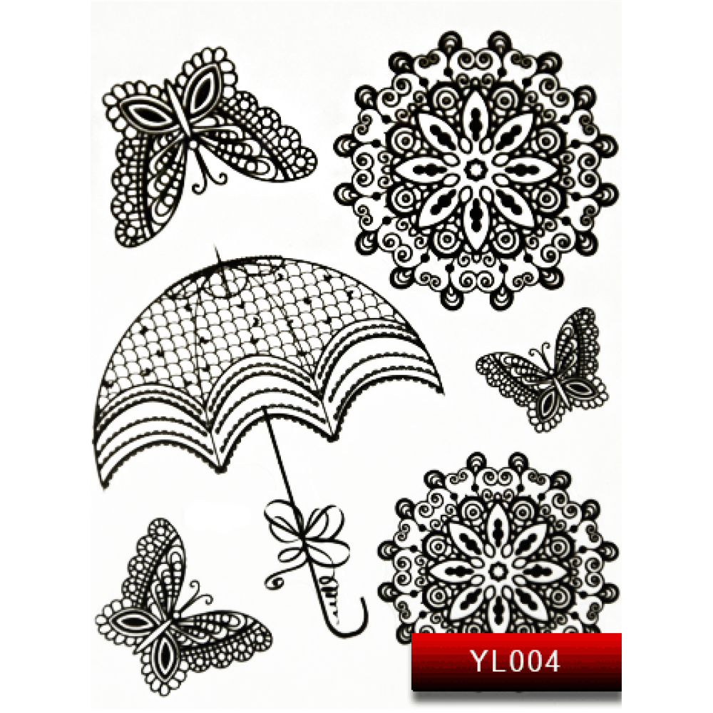 Стікери для дизайну нігтів Nail Art Stickers YL 004 за рахунок великого формату зображень використовуються фрагментарно. Ажурне чорне промальовування елементів малюнка на прозорому тлі дозволяє використовувати наклейки в якості акцентних вставок тонкого орнаменту на гель-лаковій основі будь-якого відтінку. Вибираючи базовий колір покриття для нігтів необхідно враховувати збереження контрастності візерунка. Чим світліше буде обраний гель-лак, тим яскравіше проступають тонкі лінії візерунка.