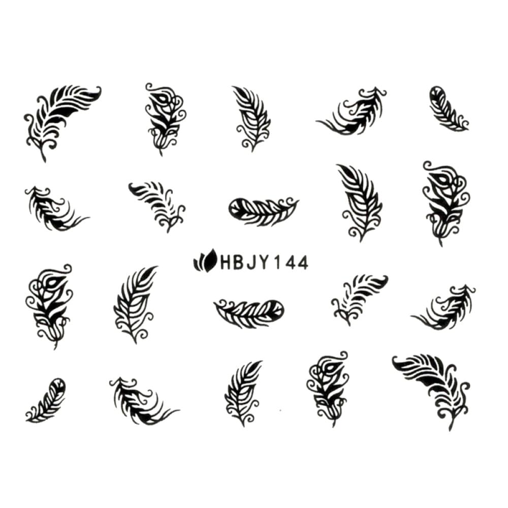 Стікери для дизайну нігтів Nail Art Stickers № 144 є простим і швидким способом нанесення готового малюнка на натуральну або змодельовану нігтьову пластину. Стильний принт вишуканих пір'їн з деталізованим промальовуванням дрібних елементів дизайну створює ефект ручного розпису і гармонійно виглядає на контрастному фоні. Міцне зчіплювання декоративного шару з нігтьовою пластиною забезпечується за рахунок еластичності і якості клейкої складової стікера. Термін носіння матеріалу становить від 2 до 3 тижнів без сколів і відшарувань.