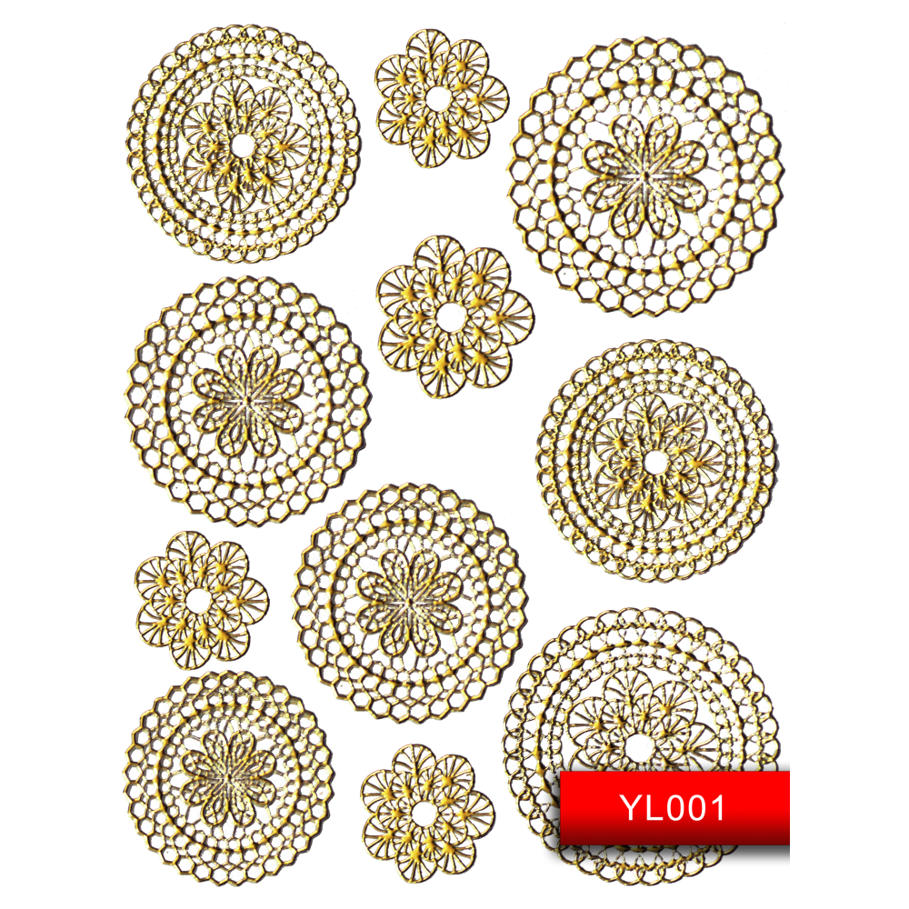 Мереживні стікери Nail Art Stickers YL 001 KODI PROFESSIONAL містять зображення ажурного стилістичного принта різних розмірів і форм плетіння. Високоякісний друк візерунка на прозорому тлі забезпечує чіткість ліній в готовому дизайні нігтів і візуальну схожість з золотим литтям.