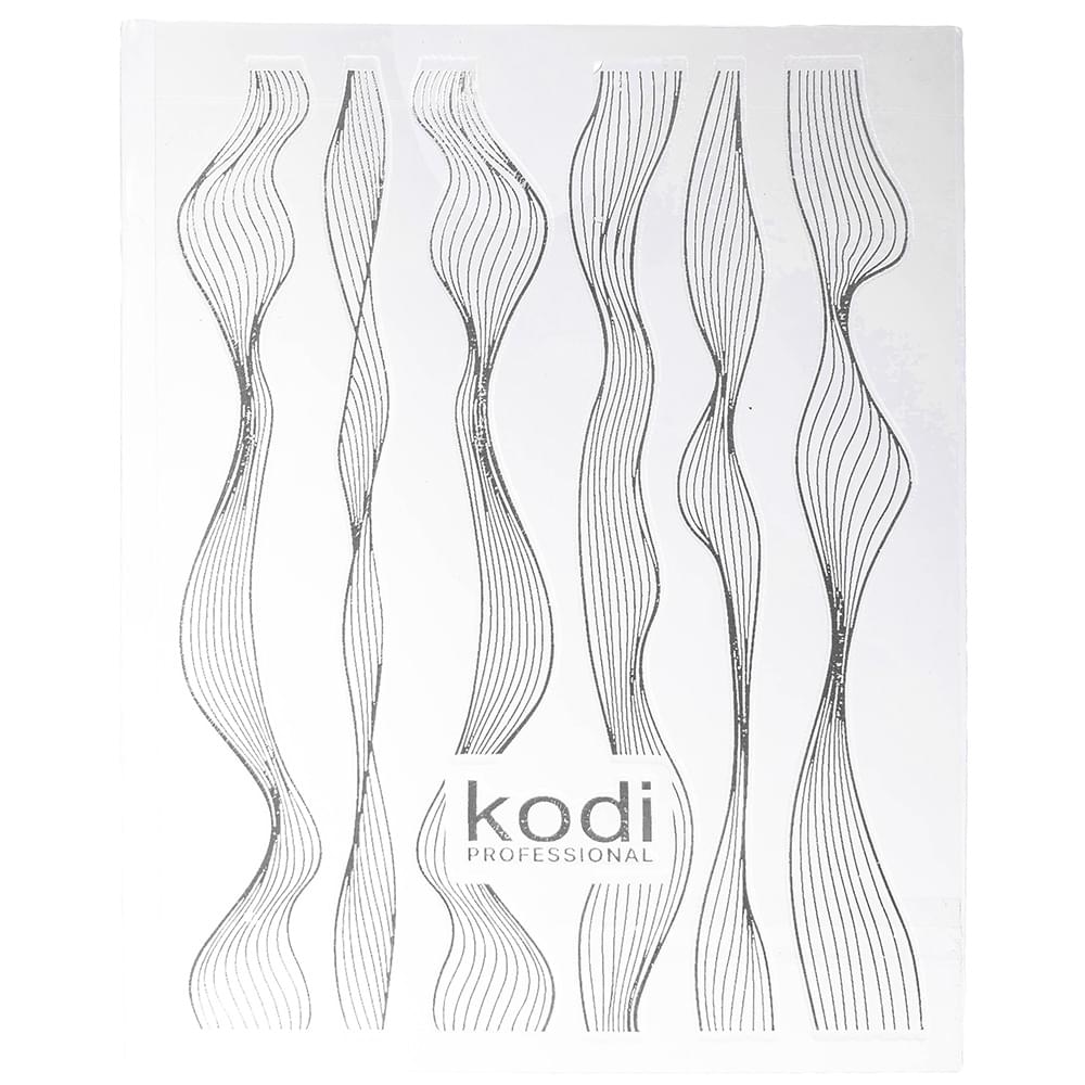 KODI PROFESSIONAL пропонує міцні, зручні в роботі гнучкі наклейки-нитки сріблястого кольору. Цей вид декору дозволяє виконати акуратний малюнок різного рівня складності без деформування. Нитки мають клейку основу, легко знімаються з основи-підкладки, наносяться на знежирене покриття і фіксуються за допомогою топа.
