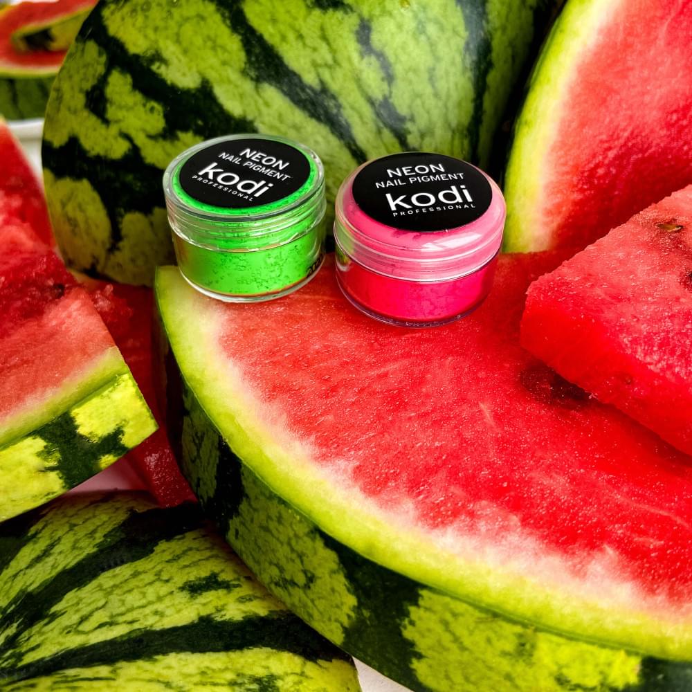 Пігменти - один з найбільш універсальних декоративних матеріалів для нейл-арт, а їх різновид і простота застосування дозволяють втілювати в життя будь-які задуми. У палітрі неонових пігментів KODI PROFESSIONAL представлено 12 фантастичних кольорів. Будь-який з цих яскравих, живих і динамічних пігментів, в залежності від способу застосування, дозволить домогтися неординарних колірних рішень і цікавих ефектів, створити по-справжньому виразний дизайн нігтів. Неонові пігменти можна застосовувати з різними нігтьовими матеріалами - гелем, акрилом, гель-лаком. Для кращого розкриття кольору пігменту на нігтьовій пластині рекомендується використовувати білу підкладку.