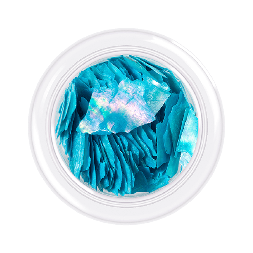 Shells style — це частинки натурального перламутру, пофарбовані за спеціальною технологією. Вони мають тонку та податливу структуру, за рахунок чого з ними легко та комфортно працювати, видозмінюючи мушлі під будь-який стилістичний запит. Використовуйте частинки перламутру в акваріумному дизайні або застосуйте їх для декору гель-лакового покриття — в обох випадках результат вам сподобається. Відтінок №10 — насичена перламутрова блакить.